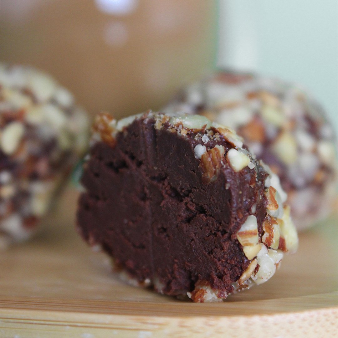 Una delicia que combina chocolate de trufa al estilo griego con especias y almendras, envuelta en chocolate colombiano para un bocado crujiente.