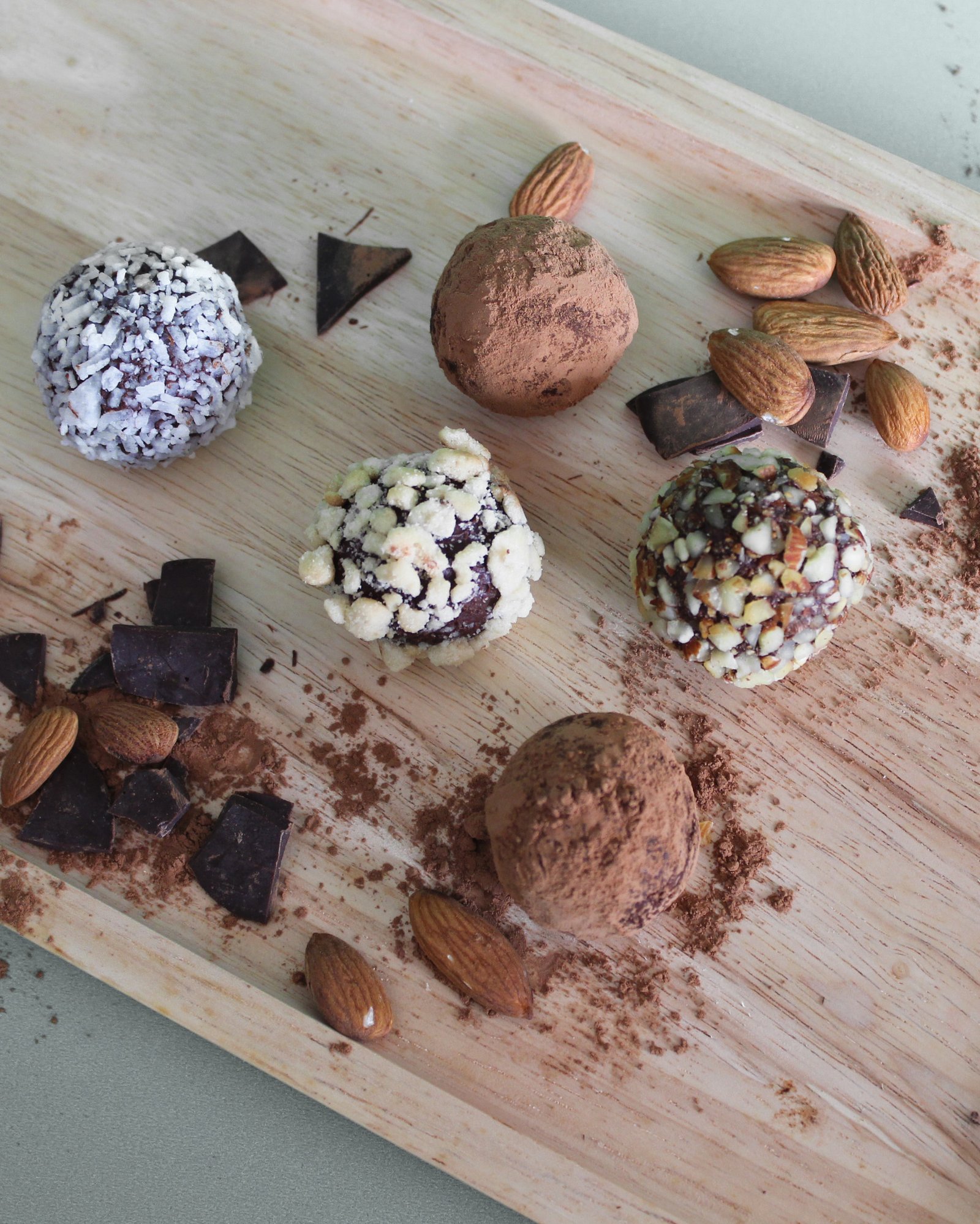 Sumérgete en el auténtico sabor del chocolate con nuestras Trufas de Chocolate, recubiertas de cacao en polvo, almendra, galleta o coco.